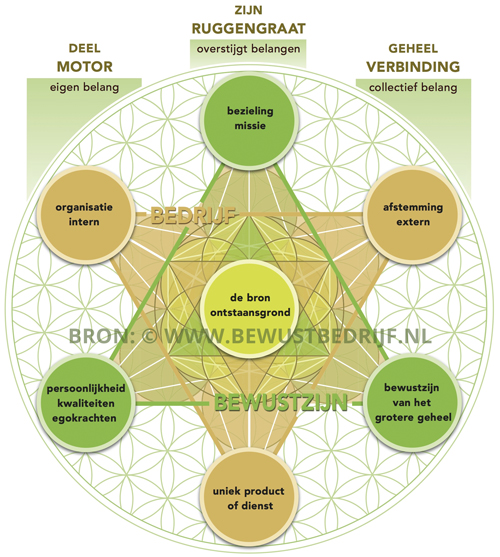 Bewustzijn van een bron waar alles uit voortkomt, het hart van de organisatie, de ontstaansgrond. Het is de impuls die leidde tot de oprichting van een organisatie. Op een dieper niveau is het de bron van universele wijsheid en van alle leven. Wanneer een organisatie verbonden is met de bron ervaren mensen vaker dat zij worden gevoed en gedragen binnen de organisatie.